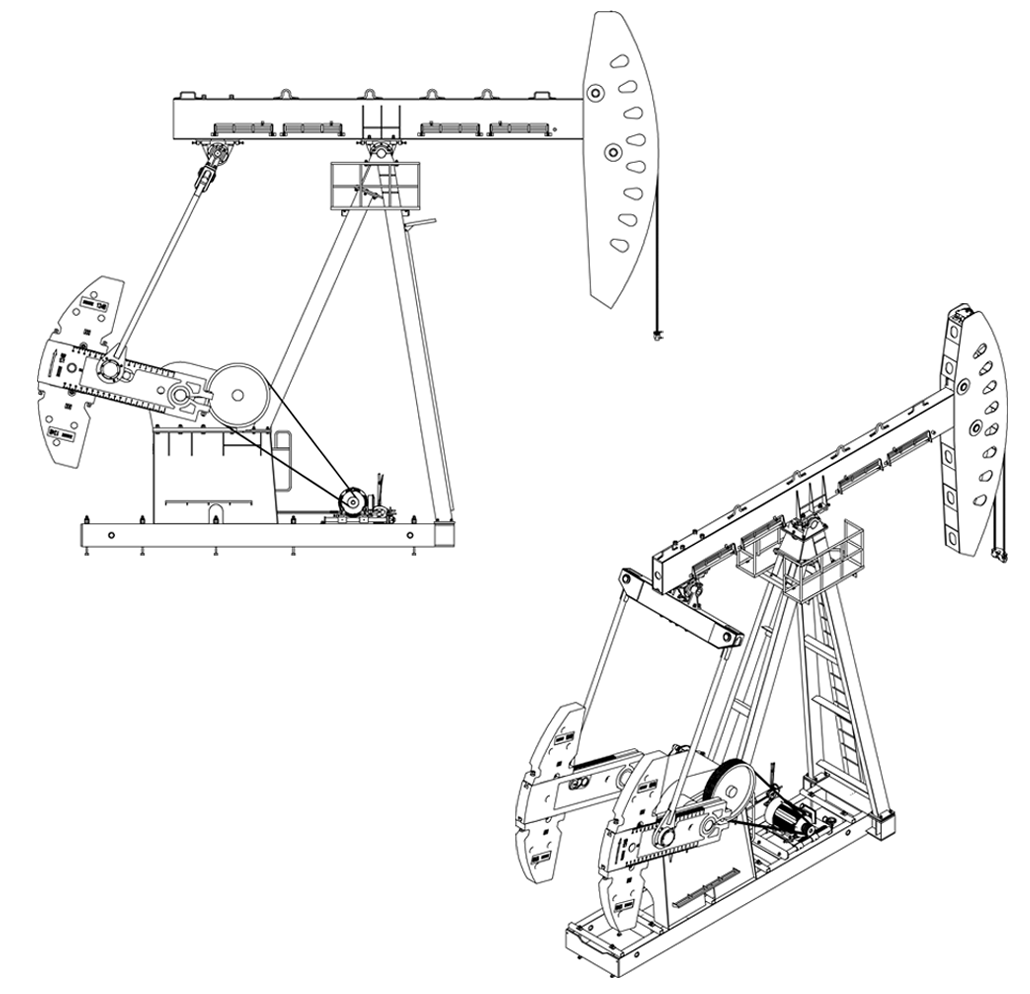 稳定的塔架式或三腿式支架结构,以支架、游梁、底座为主体,结构强度高、稳定性好,能承受较大交变载荷与冲击。